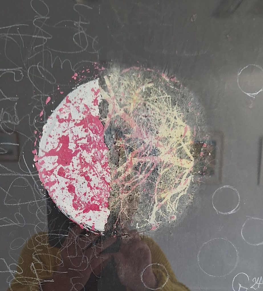 Pastel et encre sur toile 80 x 80 cm
