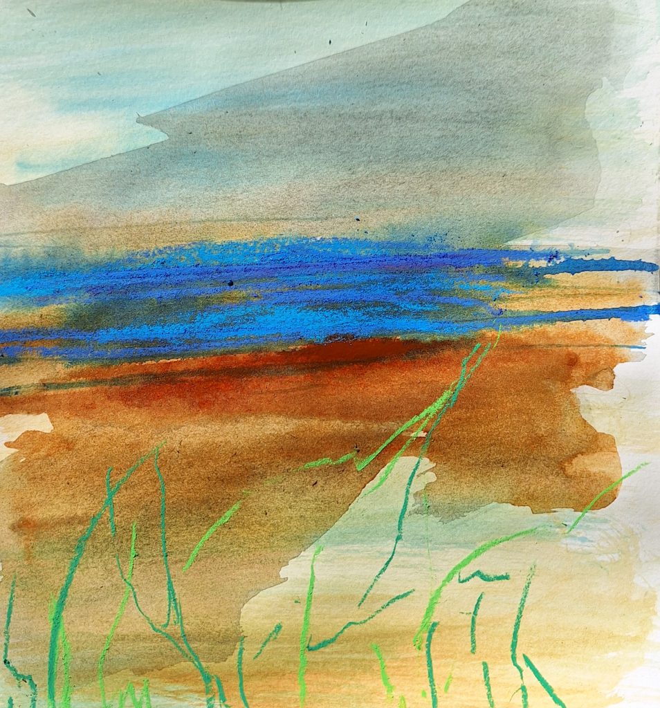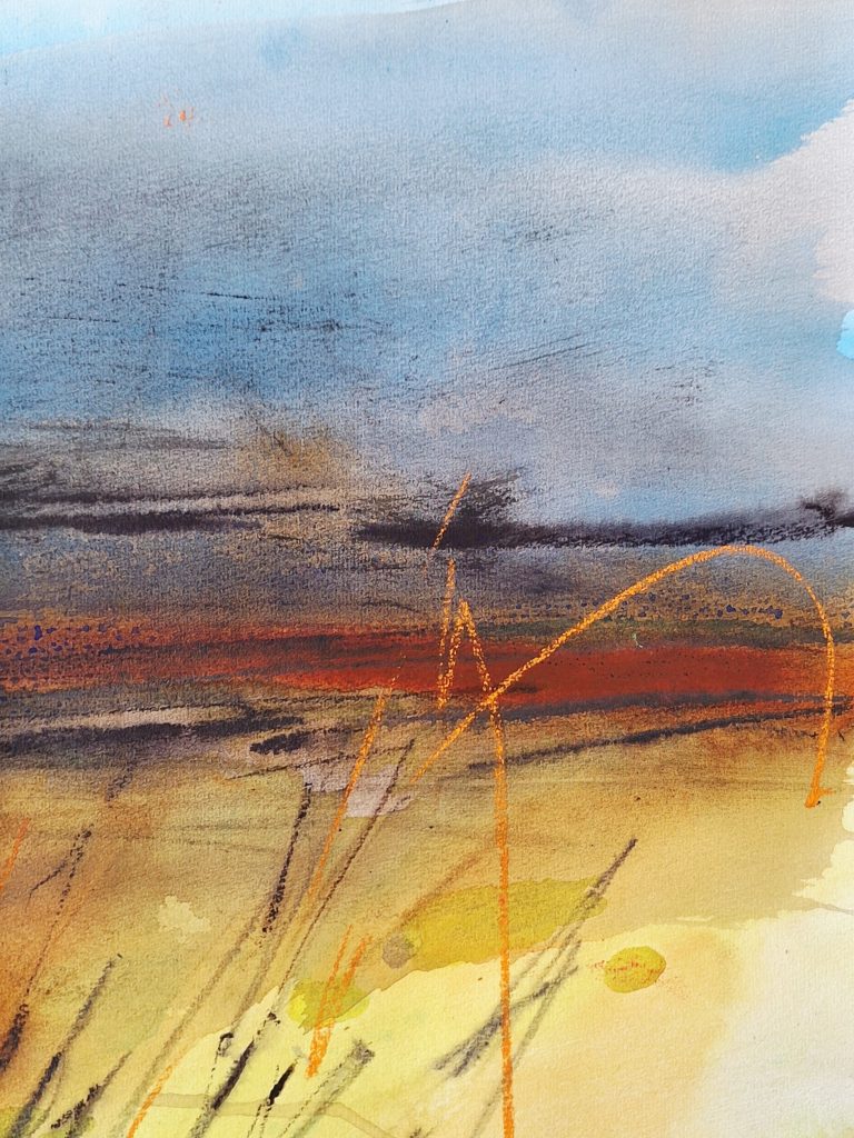 Le ciel en Médoc – pastel sec sur papier de pastel 100 x 50 cm
