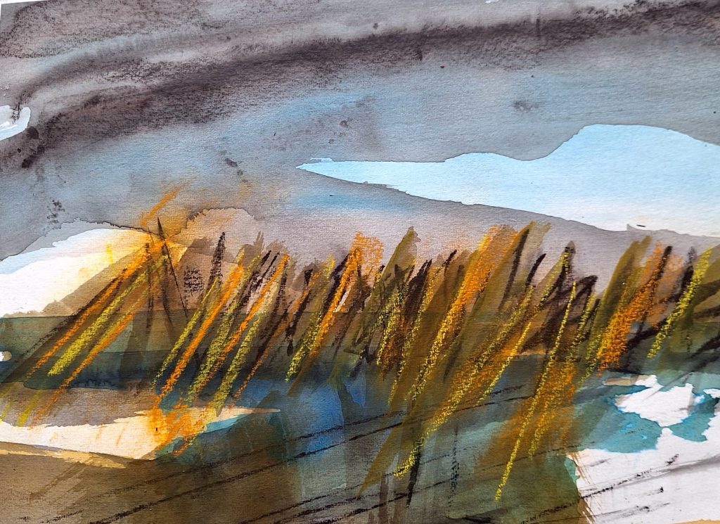 Vendu – encre sur papier aquarelle———— encre et pastel (40 x 50 cm)